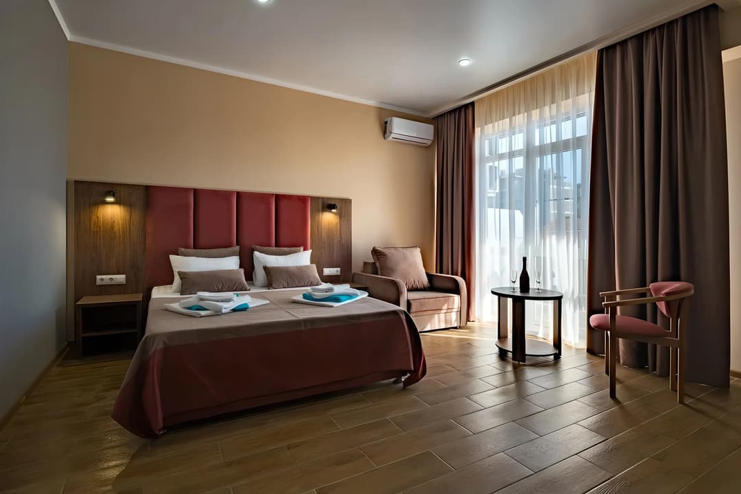Отель оформлен в современном стиле и выделяется ярким декором. Все номера отеля оснащены просторными удобными кроватями и кондиционером.
