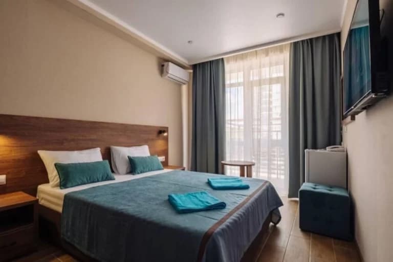 Просторный номер с удобной двуспальной кроватью, оформленный в классическом стиле. В номере большая отдельная ванная комната с бесплатными туалетно-косметическими принадлежностями, балкон со столиком. Все для вашего комфортного пребывания.